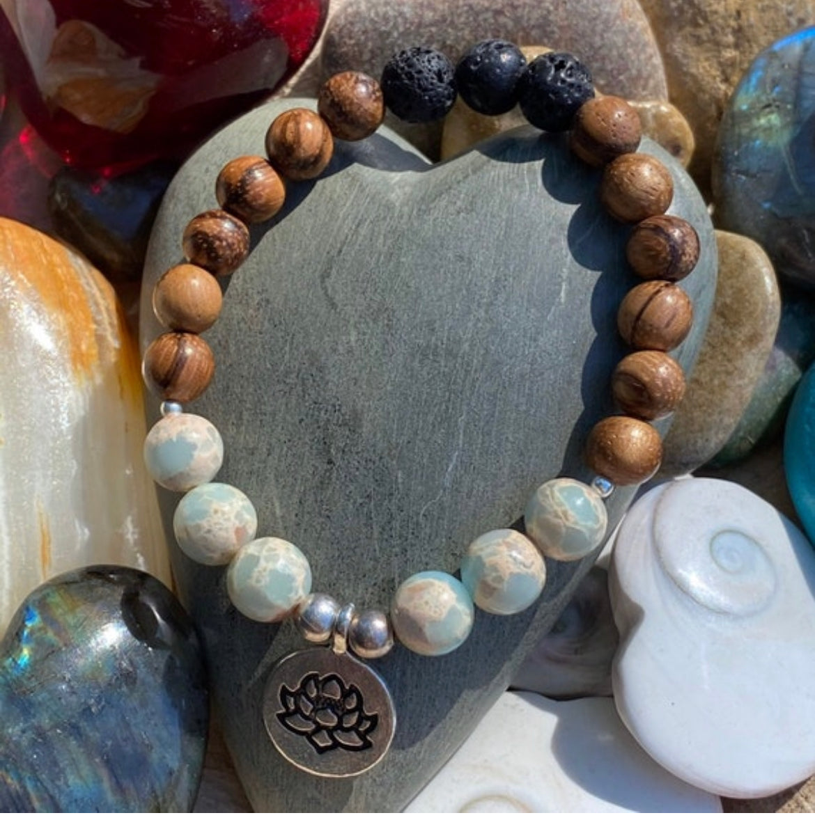 African Opal Jasper Bracelet | Mala Bracelet | Wood Braclet | Lotus Bracelet | Diffuser Bracelet | Yoga Jewelry | Meditation | Yoga | Opal |