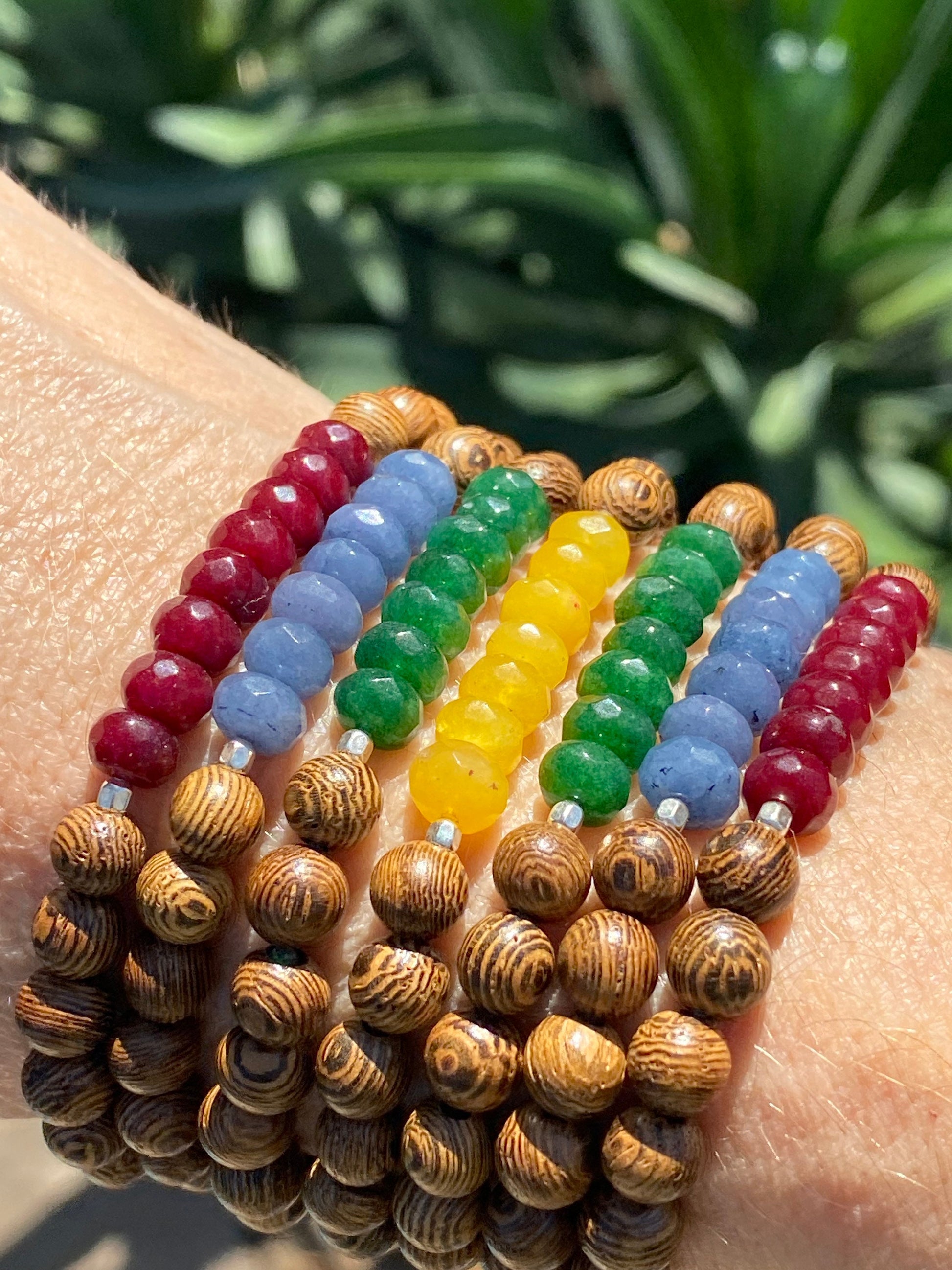 Faceted Jade & Wood Roundel Bracelet | Boho Bracelet | Wood Bracelet | Natural Stone Bracelet | Yoga | Meditation